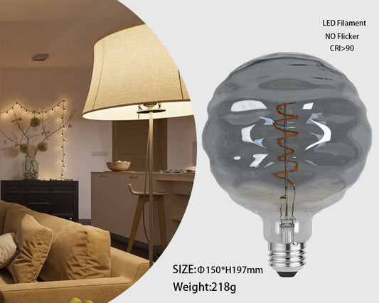 ST64 Vintage Edison Light Bulbs, Smoky Grey Coated Glass, Dimmable