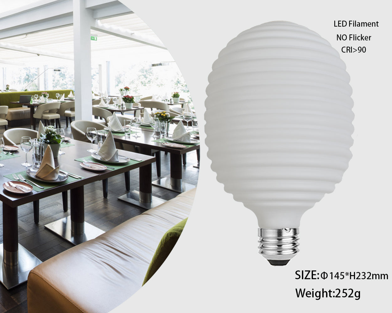 150 Striations Sphere is an impressive technical and aesthetic achievement. Characterised by its Dim to Warm and flicker free behaviour, it offers warm and ambient light when dimmed down from 100-0%
