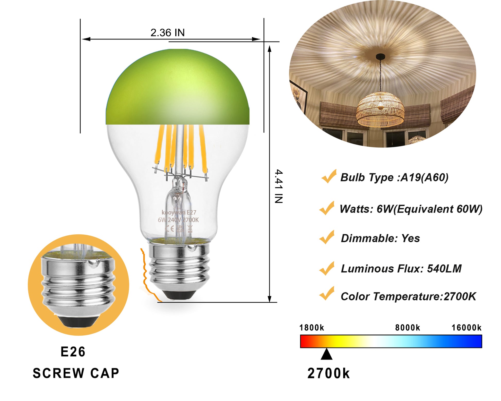 - Custom Sphere V bulb included