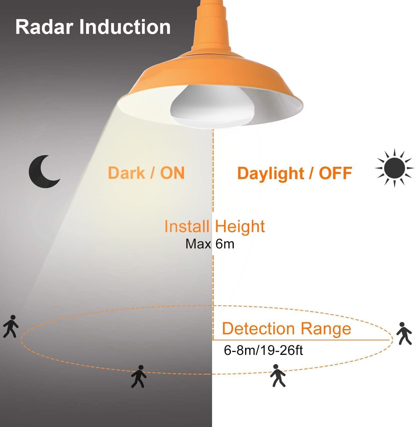 The radar sensor bulb is very sensitive to motion, There is a microwave sensor inside the bulb. Provides higher sensitivity than PIR infrared sensors bulbs, and works well even when the body temperature is the same as the ambient temperature.The radar led bulb will turn on automatically when you passed by within 13-26 feet in the dark,and turn off automatically within 30 seconds after you leave the area.