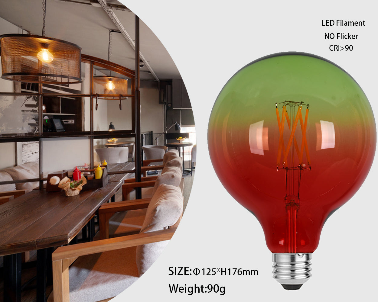 G125 Change gradually Red and green is an impressive technical and aesthetic achievement. Characterised by its Dim to Warm and flicker free behaviour, it offers warm and ambient light when dimmed down from 100-0%.
