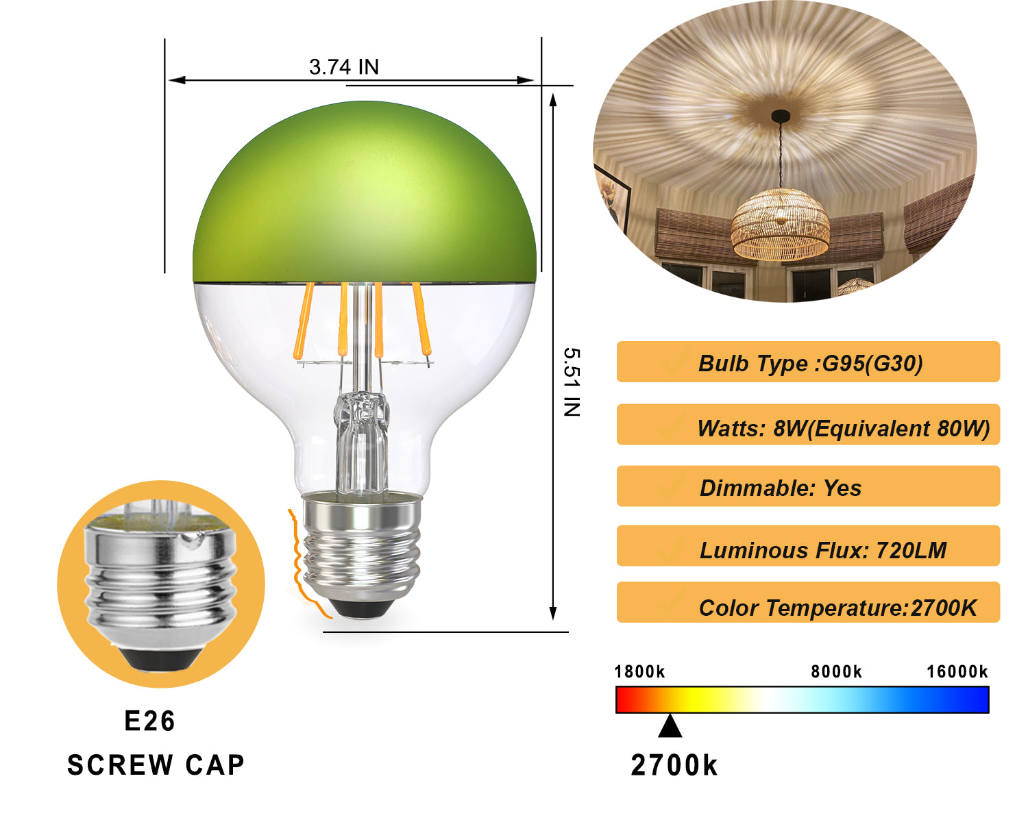 - Custom Sphere V bulb included